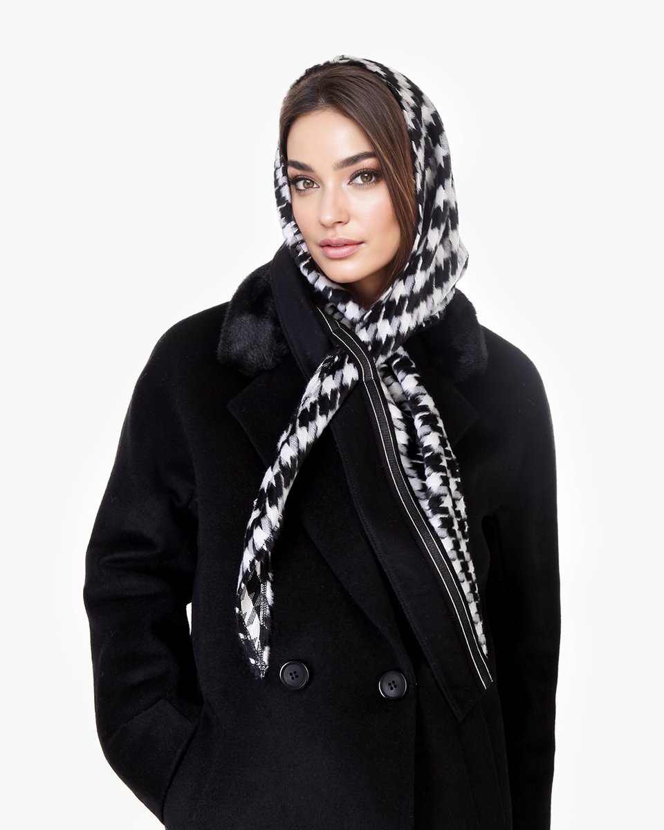 Элегантный аксессуар для холодного времени к вашему пальто или пуховику. Косынка треугольной формы с застёжкой на петлю.