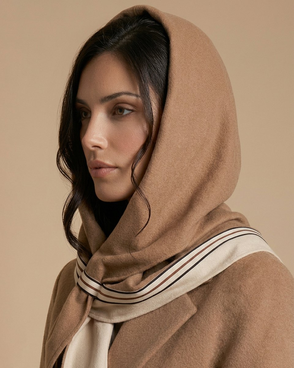 Элегантный аксессуар для холодного времени к вашему пальто или пуховику. Косынка треугольной формы с застёжкой на петлю.