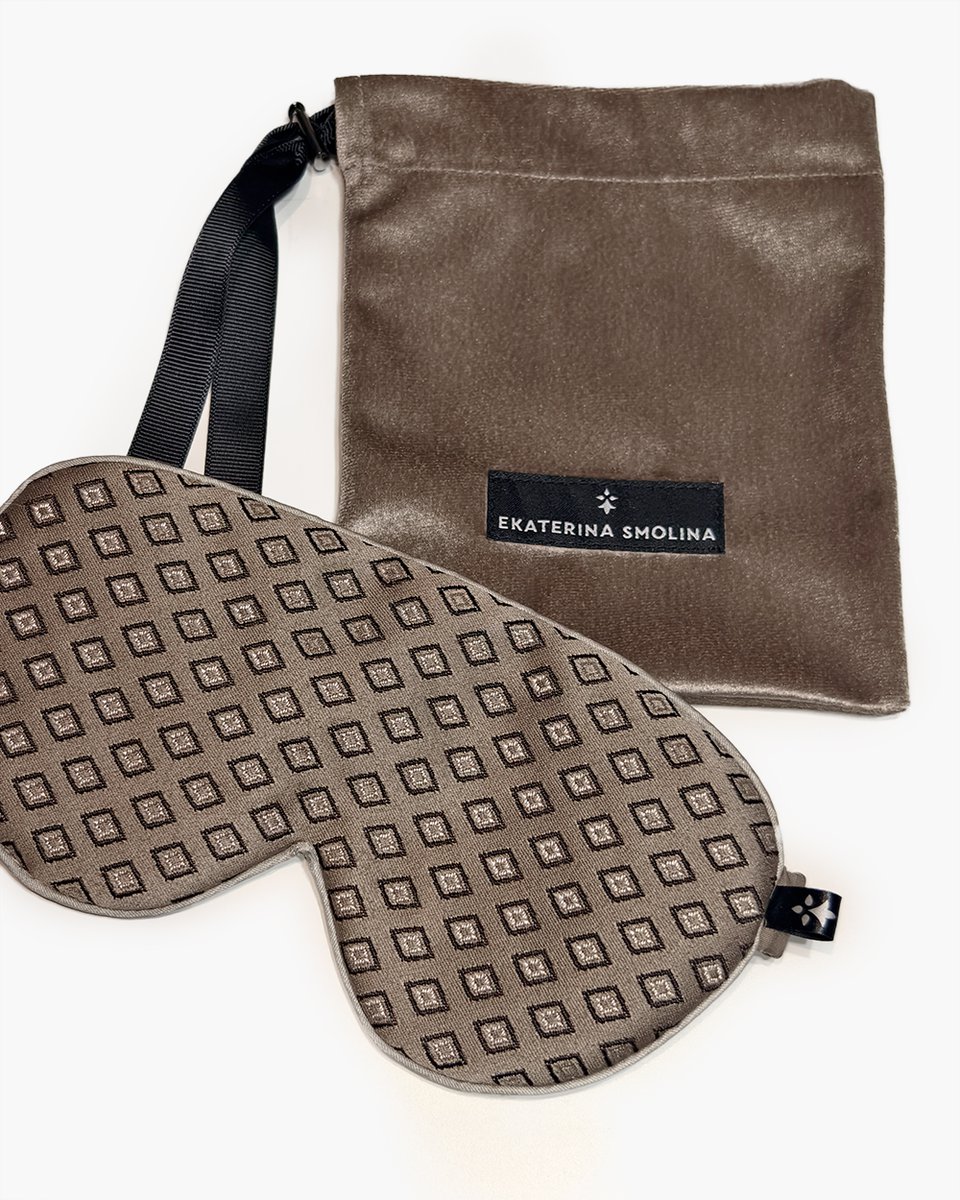 Маска для сна из жаккардовой ткани бежевая ромбы