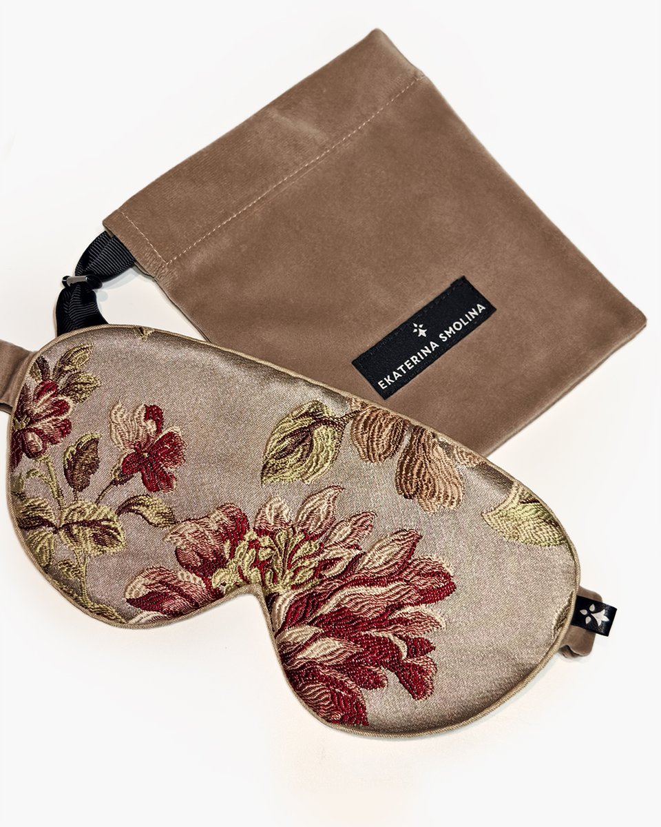 Маска для сна из жаккардовой ткани бежевая с цветами
