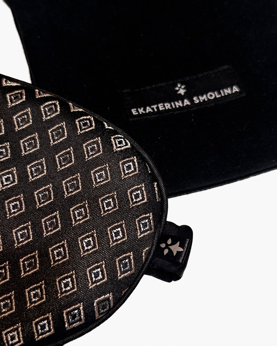 Маска для сна, выполненная из роскошного французского жаккарда с набивным рисунком, имитирующим старинную парчу. Внутренняя сторона, прилегающая к лицу, отделана мягким бархатом, обеспечивая исключительный комфорт. Аксессуар поставляется в фирменном бархатном пыльнике с логотипом бренда, что делает его готовым элегантным подарком. Изысканный и практичный предмет для создания атмосферы уюта и заботы о себе, идеальный вариант для новогоднего сюрприза.