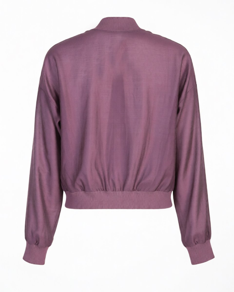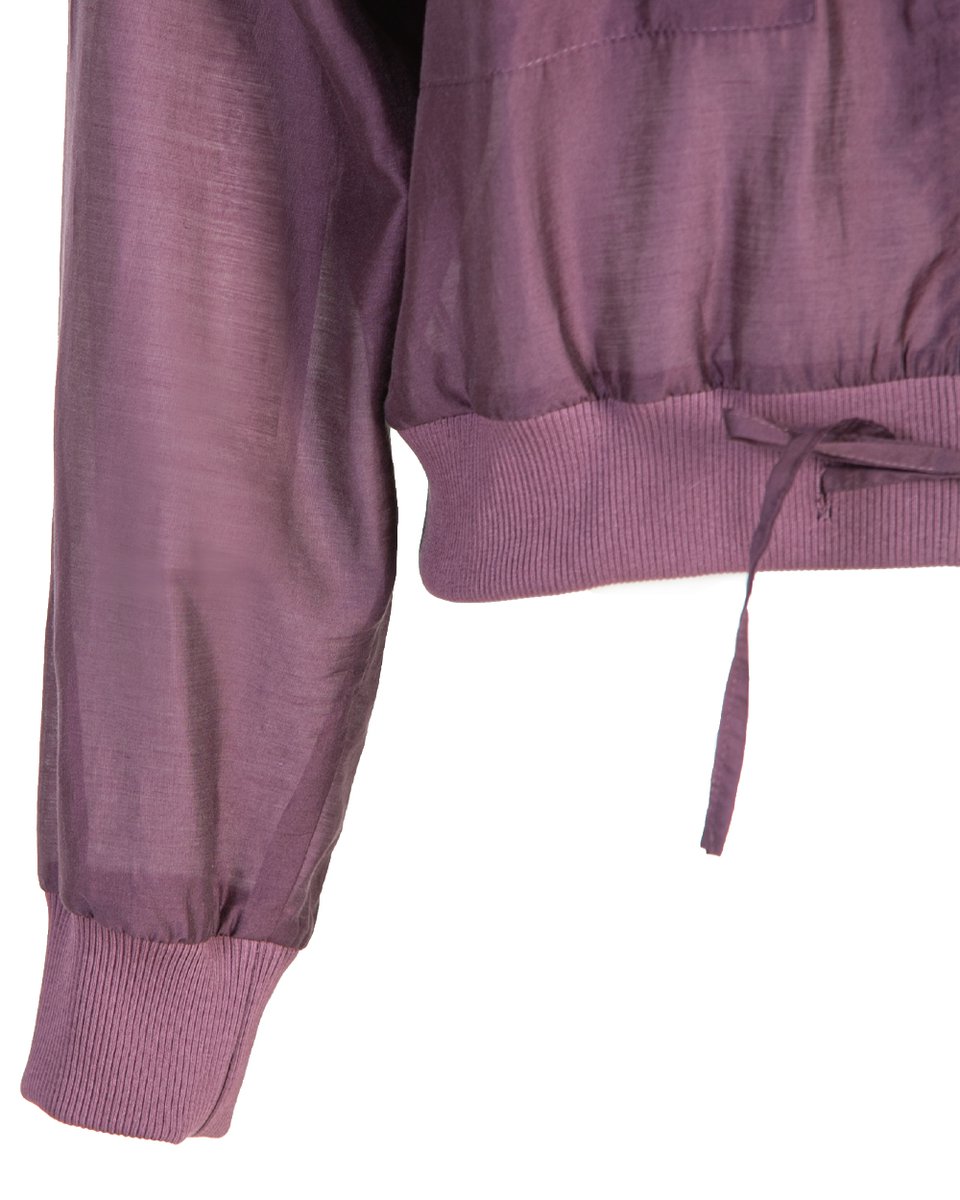 Блуза-бомбер из струящейся тонкой ткани. Ее полупрозрачная текстура создает эффект вуали, позволяя играть с тенями и многослойностью. Бомбер можно носить как блузу на нижнее кружевное или базовое белье или как верхний слой в образе. Такая вещь аксессуар гармонично впишется в повседневный спортшик и богемный гардероб, а также дополнит театральные аутфиты, нарядные вечерние платья и топы с богатой текстурой и блестками.