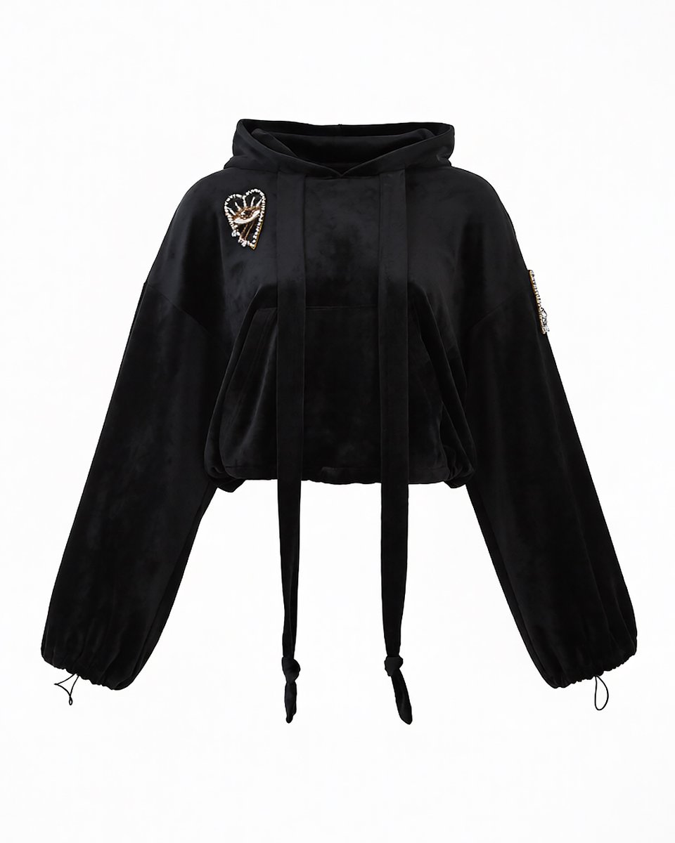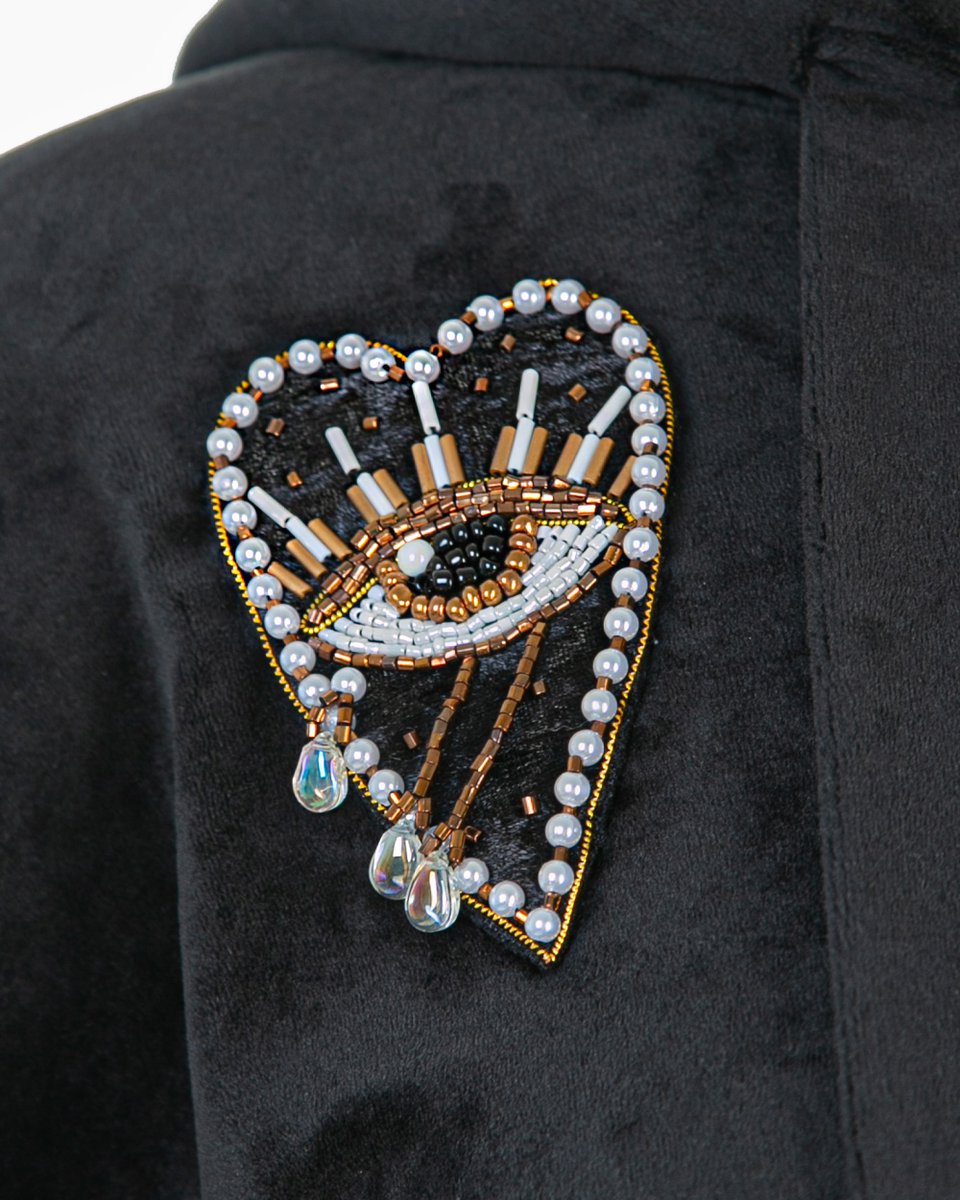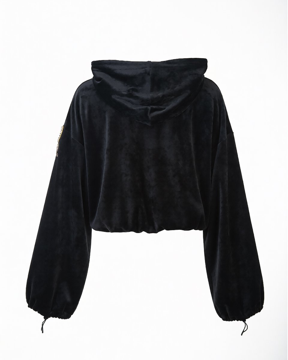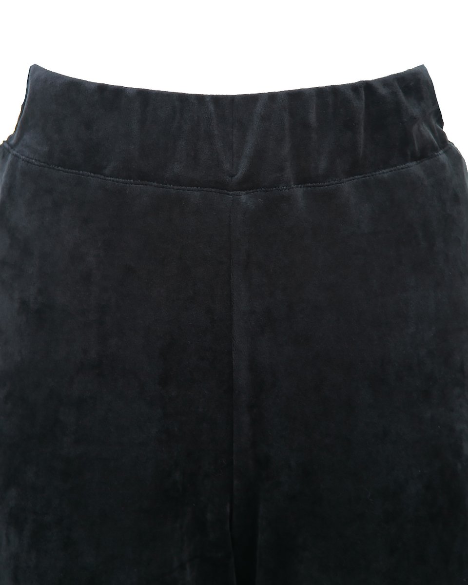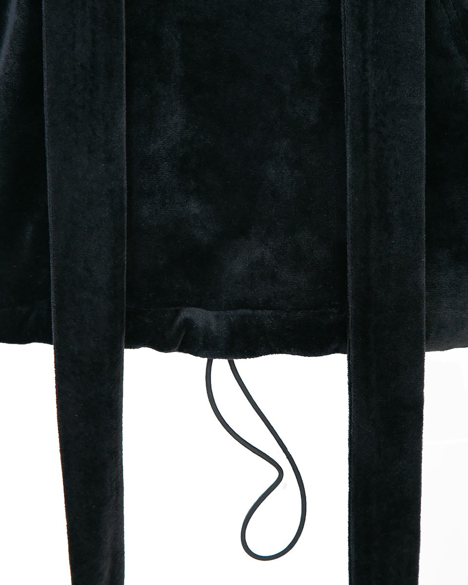 Спортшик-костюм из мягчайшего бархата глубокого чёрного оттенка — современная комфортная спортшик классика в нарядном стиле.Идеальный выбор для ценителей тактильной роскоши и уютного шика. Комплект из худи и широких брюк легко трансформируется из повседневного ансамбля для отдыха в элегантный вечерний образ благодаря благородной фактуре ткани. Бархат роскошно сочетается с жемчугом, кристаллами и шёлком, позволяя создать лук для особого случая. При этом костюм практичен: не мнётся, легко ухаживается и сохраняет безупречный вид.