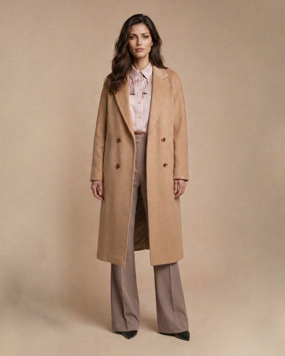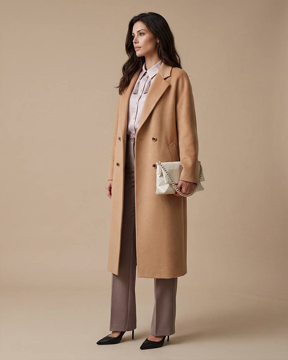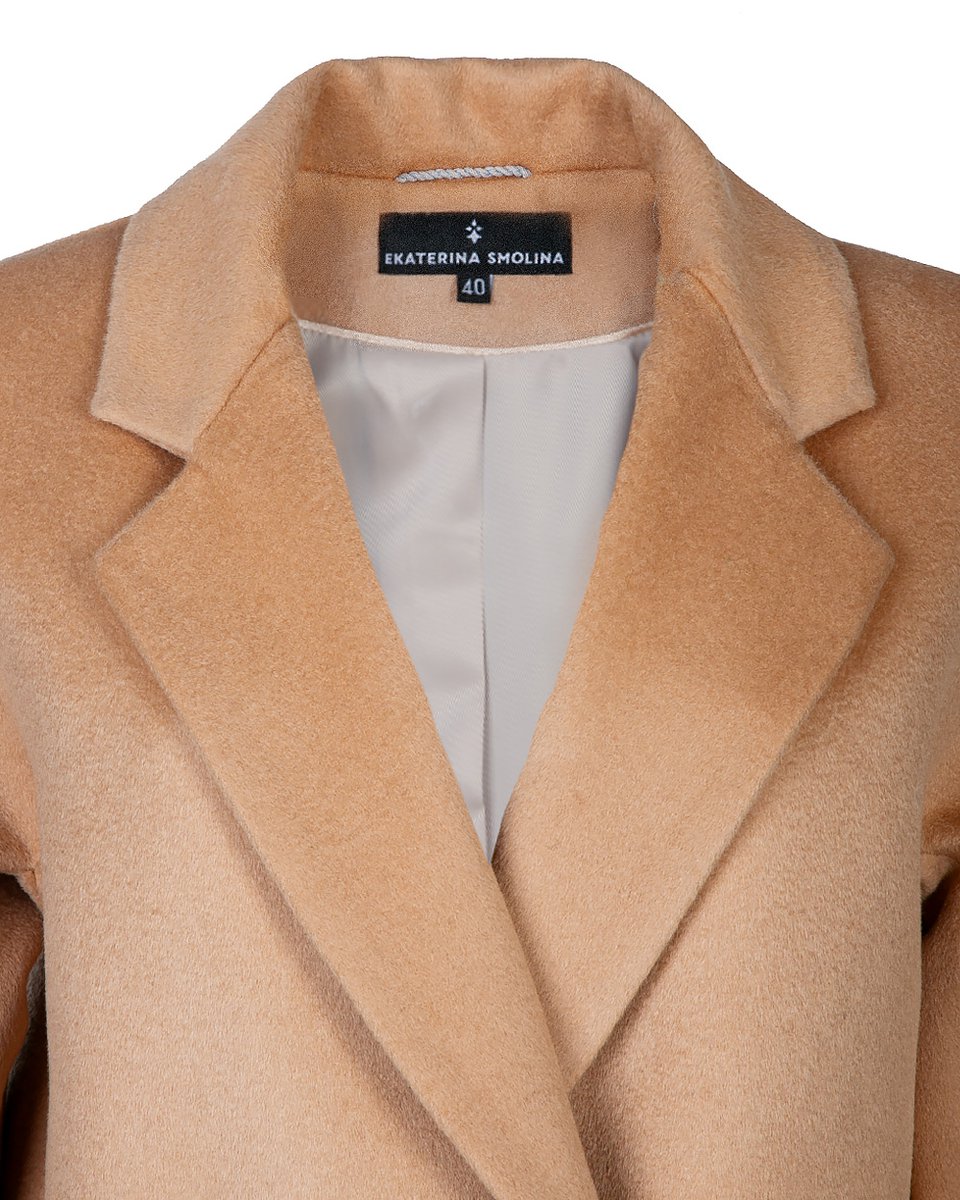 Прямое пальто в минималистичном крое с английским воротником и двубортной застежкой. Цельнокроеный рукав обеспечивает мягкость линий, плавность силуэта и свободу движений. Оттенок медовой нуги добавляет тепла, при этом остается универсально базовым. Модель впишется в повседневный гардероб и статно завершит деловые образы.