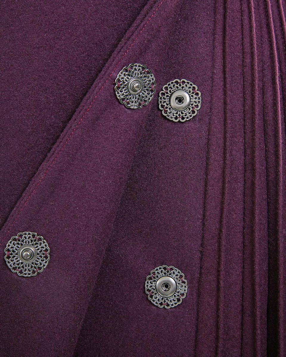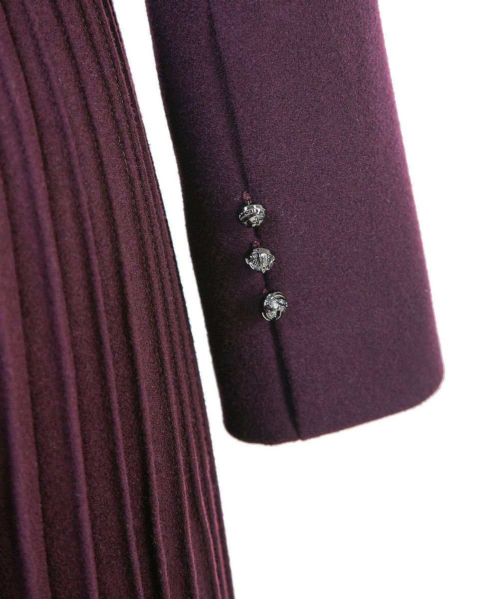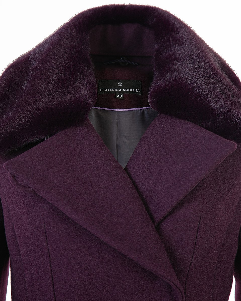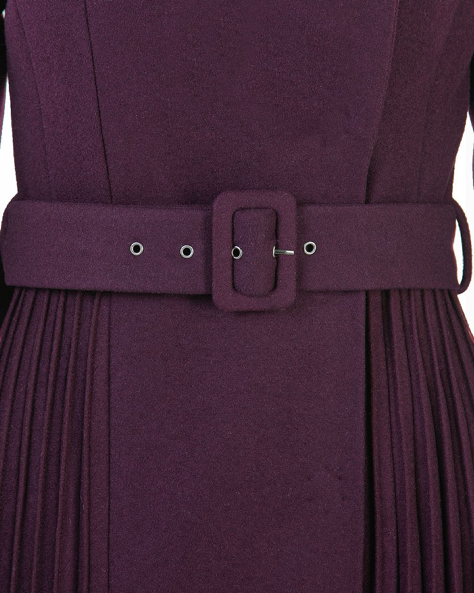 Бестселлер линии “Пальто как платье” длины макси цвета темный пурпур. Пальто из плотного драпа со скульптурным кроем, что делает посадку изящной и утонченной. Пальто с английским воротником, лацканы которого можно застегнуть на пуговицу, плотно закрыв грудь. Отложная часть воротничка из съемного эко-меха под норку в тон. Юбка-гофре длины макси, где каждая складка прострочена по краю, что делает юбку более струящейся, структурной и долговечной. Строчка закрепляет складку, не давая ей распрямиться со временем. В комплекте к пальто идет широкий текстильный ремень с обтяжной пряжкой в тон, который акцентирует талию. Сезонность: осень, зима.