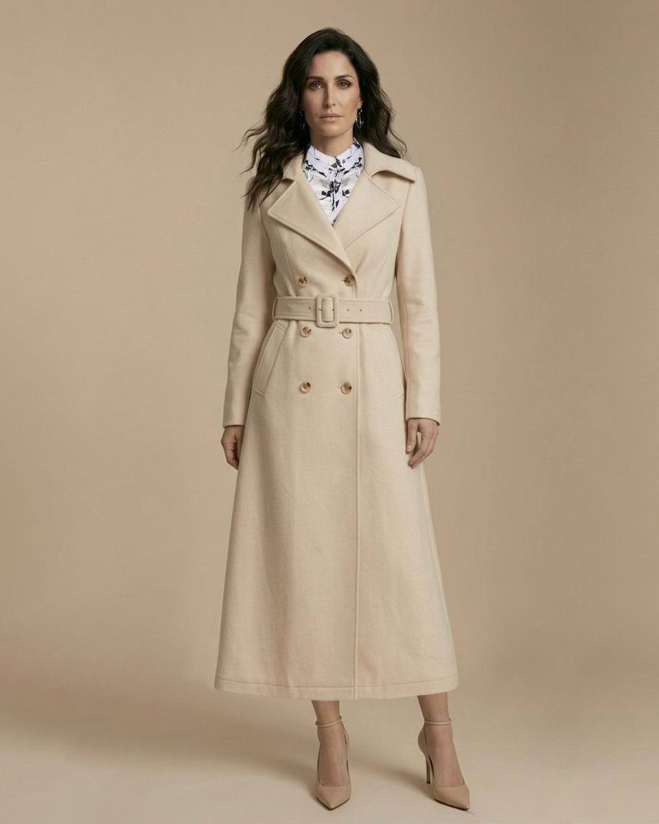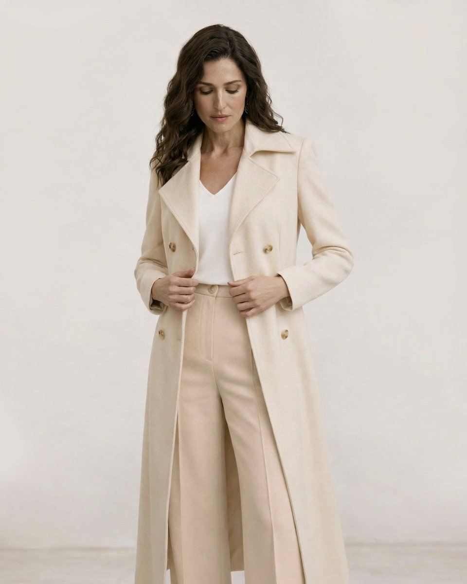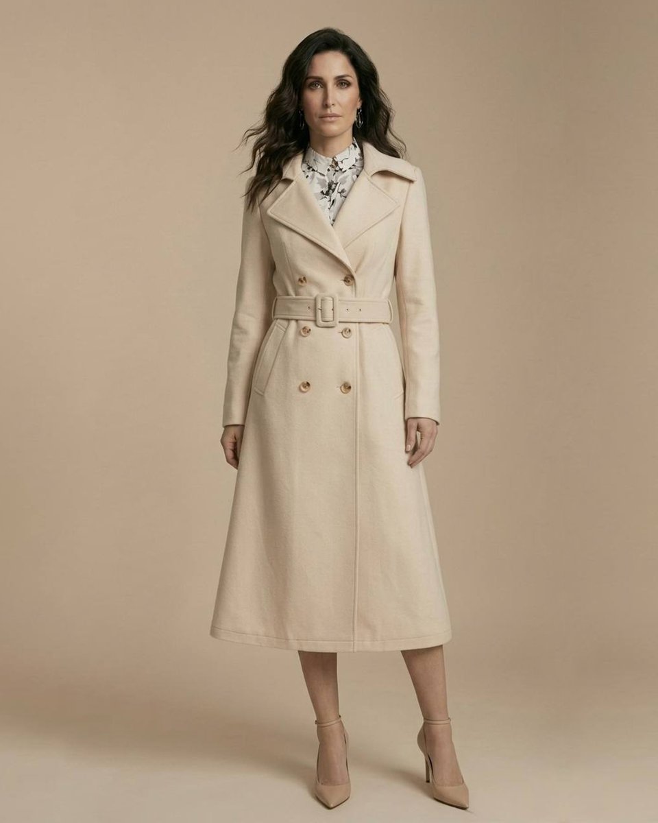 Легкое двубортное пальто-тренч из водоотталкивающего и ветрозащитного бархата кремового цвета. Тренч классического кроя с посадкой по фигуре в верхней части, английским воротником и отрезной юбкой-трапецией. Английский воротник застегивается на пуговицу, плотно закрывая грудь. Приталенная женственная модель с текстильным ремнем из бархата с пряжкой. Ткань невероятная тактильная, ее бархатная текстура в нежном оттенке создает мягкий образ. Бархат обладает водоотталкивающими свойствами и легко очищается сухой щеткой. Сезонность: теплая весна и осень.