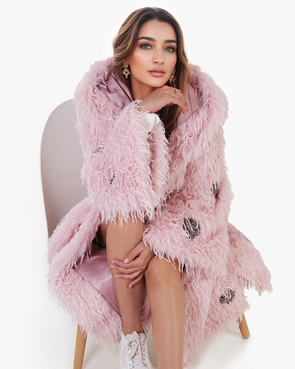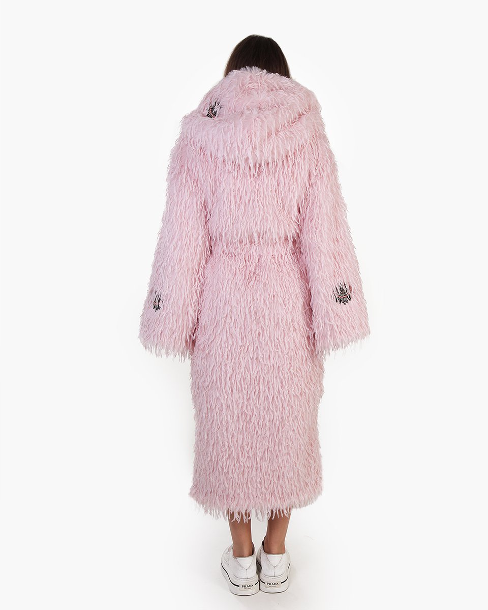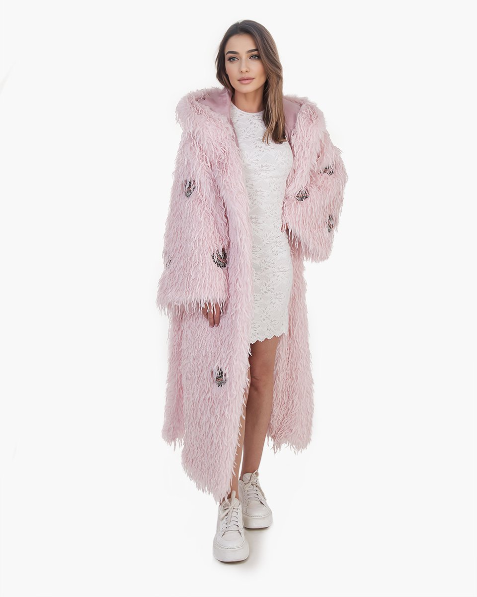 Роскошная легкая и пушистая бохо шуба из эко-материала. Ворс ткани невероятно мягкий и напоминает ламу или пышные страусиные перья. Шуба-праздник, шуба настроение с летящими разрезами, объемным капюшоном и пушистым поясом в нежном и эндорфиновом женственном цвете пудровой розы. Шуба украсит ваш нарядный, повседневный бохо, готический или просто драматический гардероб верхней одежды. Шуба свободного кроя создаст парадный и расслабленный образ, как и подобает настоящему стилю бохо. Модель без дополнительного утеплителя. Но, благодаря крою, она изящно скроет под собой объемные свитера и кардиганы, пышное платье или многослойные шелка с кружевом на вечер.