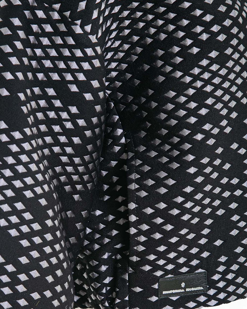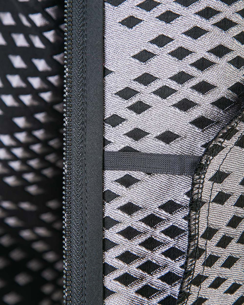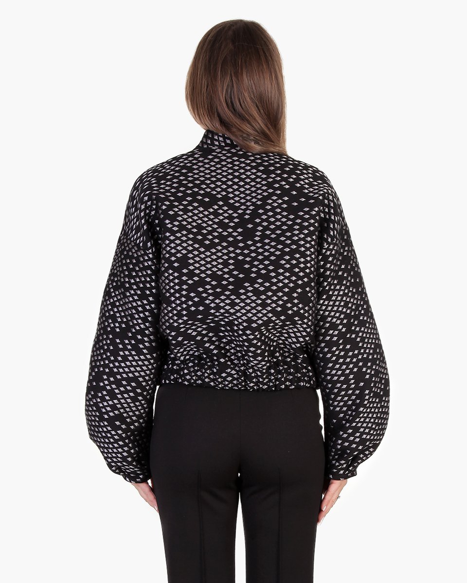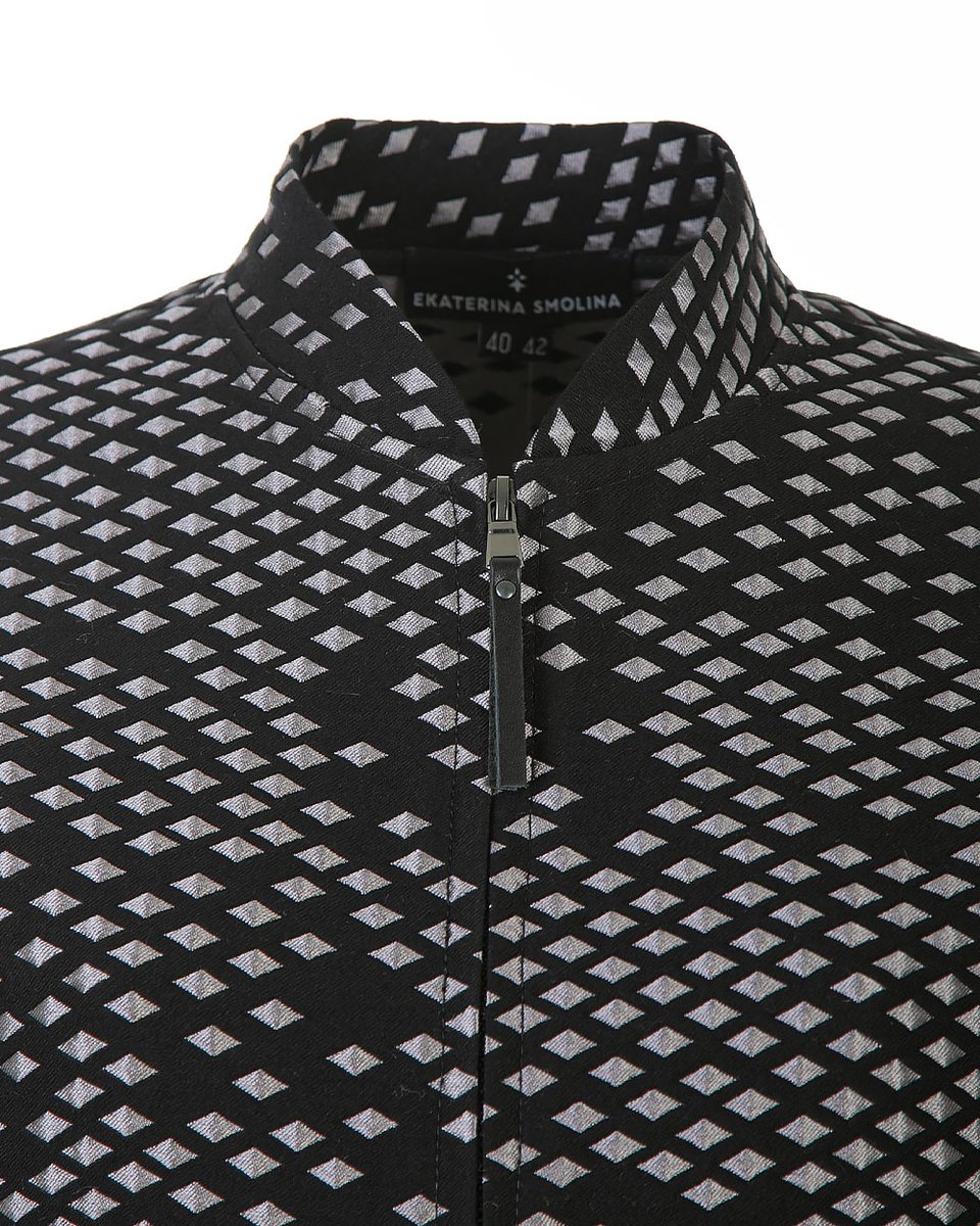 Бомбер из фактурного французского жаккарда, где на глубоком чёрном фоне мерцает узор из серебристых ромбов, напоминающих россыпь звёзд в ночном небе. Модель с прямым кроем и спущенным плечом создаёт непринуждённый, но структурированный силуэт. Пышные рукава, собранные у манжета в складки, добавляют образу объём и легкий романтичный флер. Застёжка на молнию и два боковых кармана делают жакет практичным. Универсальная вещь как для ежедневной носки, так и для вечерних образов, которая станет ярким акцентом в сочетании с однотонными юбками и брюками, джинсами или поверх атласного платья.