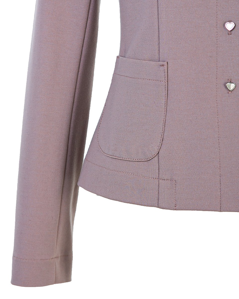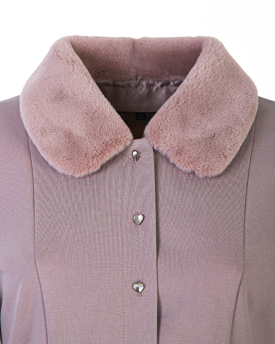 Элегантный жакет из эластичной джерси с приталенным силуэтом, который подчеркивает фигуру, создавая женственный и изящный образ. Модель с отложным воротничком из пушистого эко-меха и застежкой на пуговицы-сердечки. Также романтичность образу придает нежный оттенок пепельной розы. Составляем кокетливые комплекты с юбкой-карандашом, пышными юбками плиссе, а также более дерзкие и свободные со оверсайз денимом. Идеальный выбор для женственных деловых и повседневных образов.