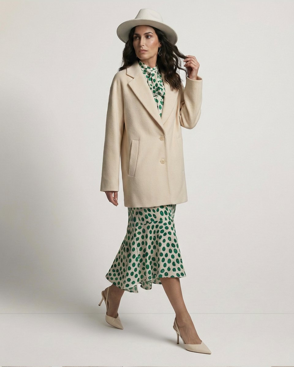Полупальто-жакет с расслабленным свободным кроем и мягкими линиями за счет цельнокроеного рукава. Однобортная застежка и прямой силуэт создают лаконичную основу для весенних образов. Свежий молочный оттенок делает модель универсальной и визуально легкой. Базовая светлая вещь, которая одинаково хорошо дополнит строгие деловые костюмы, повседневный деним, а также платья и юбки с яркими принтами. Для тех, кто ценит вневременную элегантность и качество исполнения.