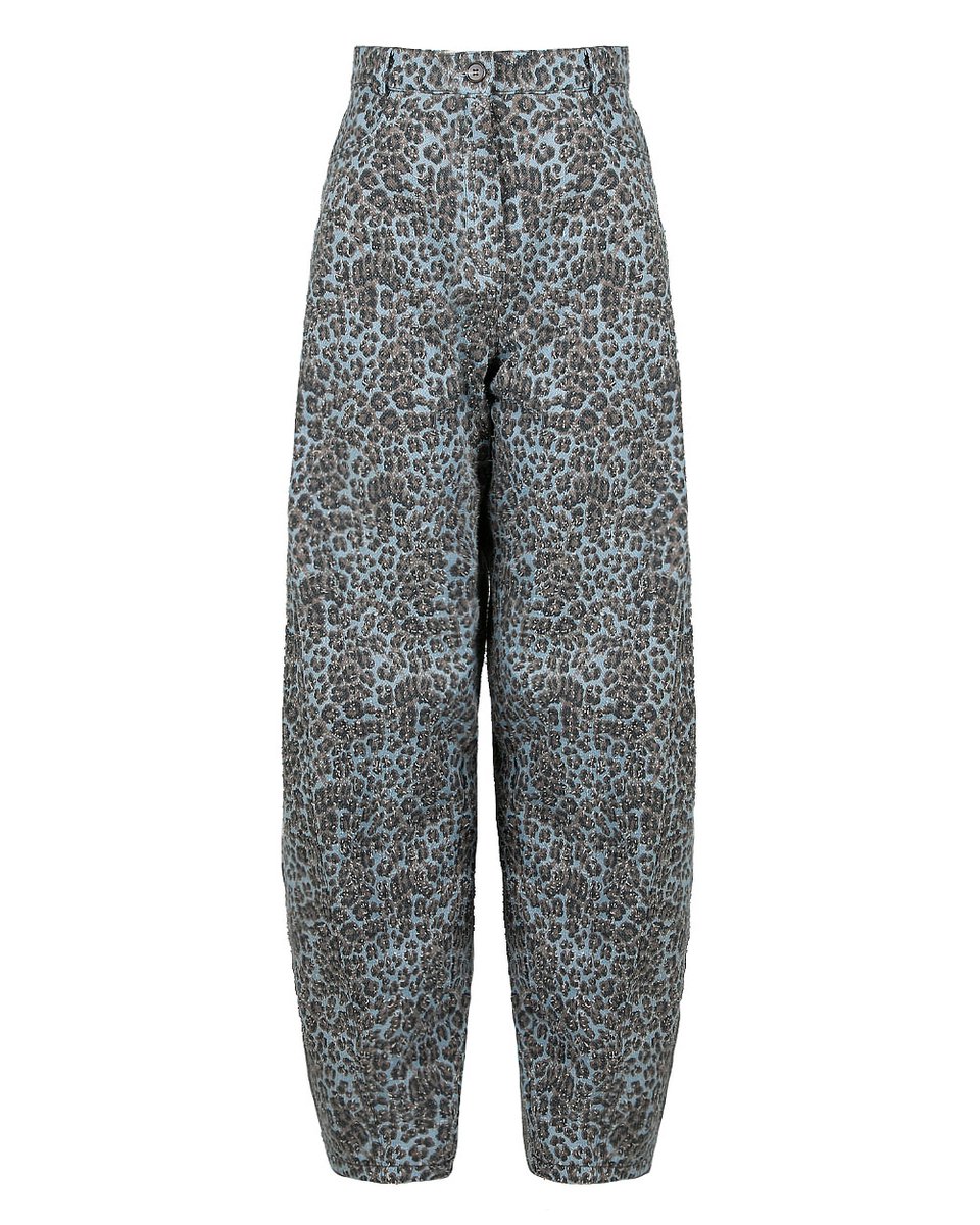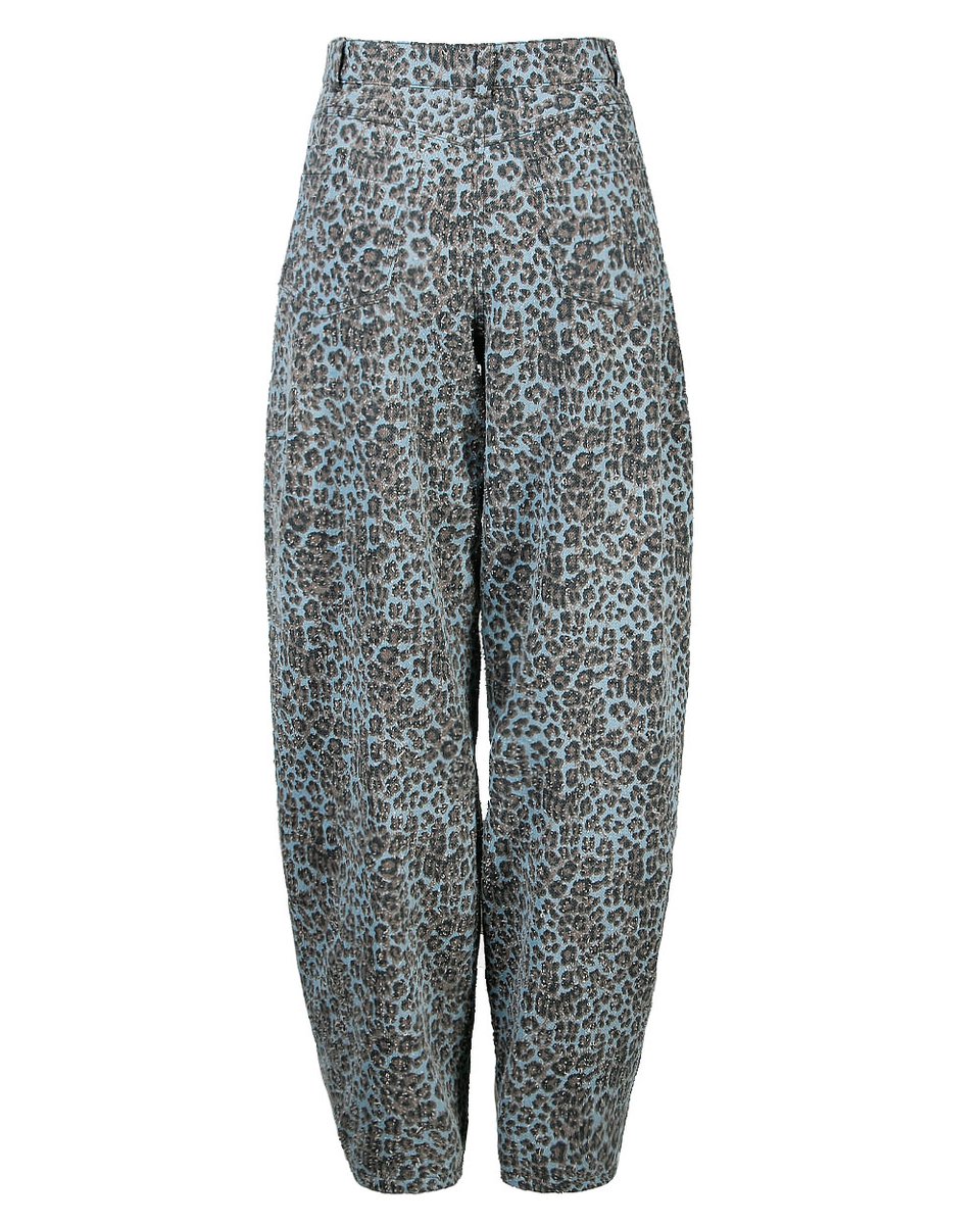Джинсы-бананы с высокой посадкой из мягкого серого денима с леопардовым принтом — акцентная база, которая подчеркнет характер. Полуоблегающий силуэт сверху и свободные брюки, зауженные к низу, создают комфортный объем и сохраняют женственность. На задних накладных карманах — фирменные нашивки с логотипом бренда. В коллекции представлена с курткой-бомбером в моно-принт (арт. 3297-02) для создания эффектного тотал-лука.