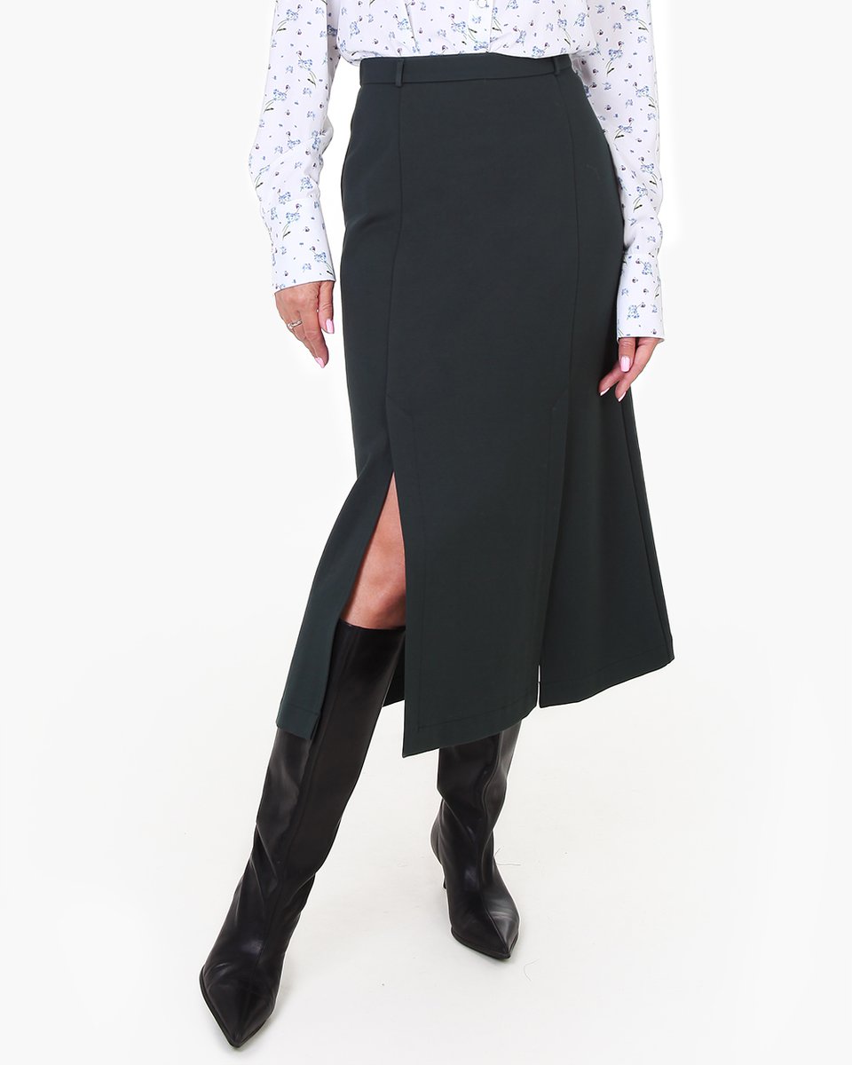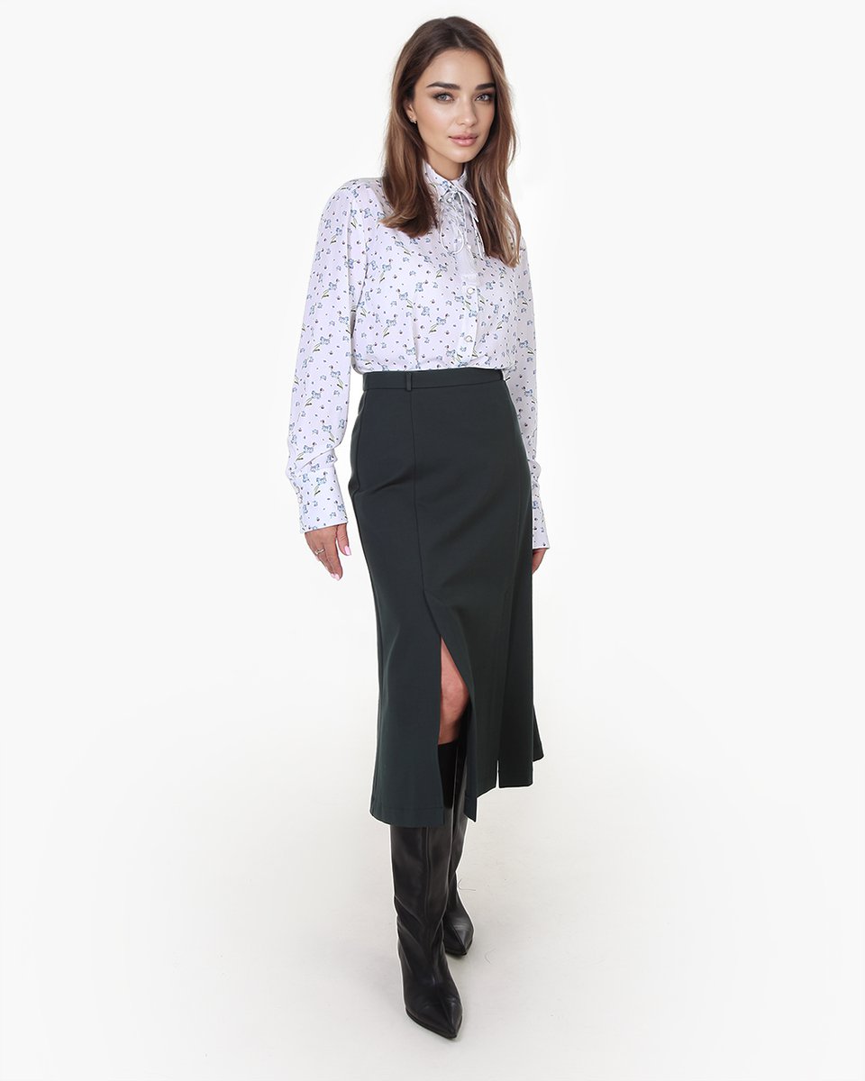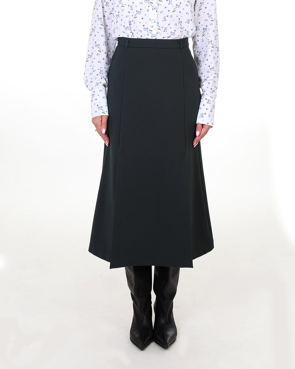 Юбка-трапеция из шести клиньев с двумя разрезами спереди. Базовая модель средней длины, к которой подойдут строгие и яркие костюмные жакеты для деловых и повседневных образов. В коллекции представлена с жакетом из джерси (арт. 3307-02). Крой юбки-трапеции элегантно корректирует фигуру, умеренно облегая бедра и плавно расширяясь к низу. Два разреза спереди эффектно смотрятся в движении и уместны даже для строгого офисного дресс-кода.