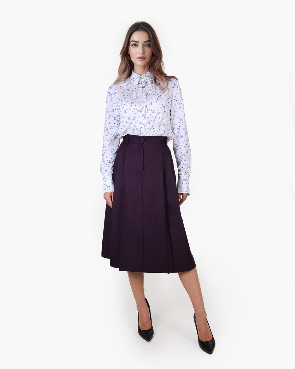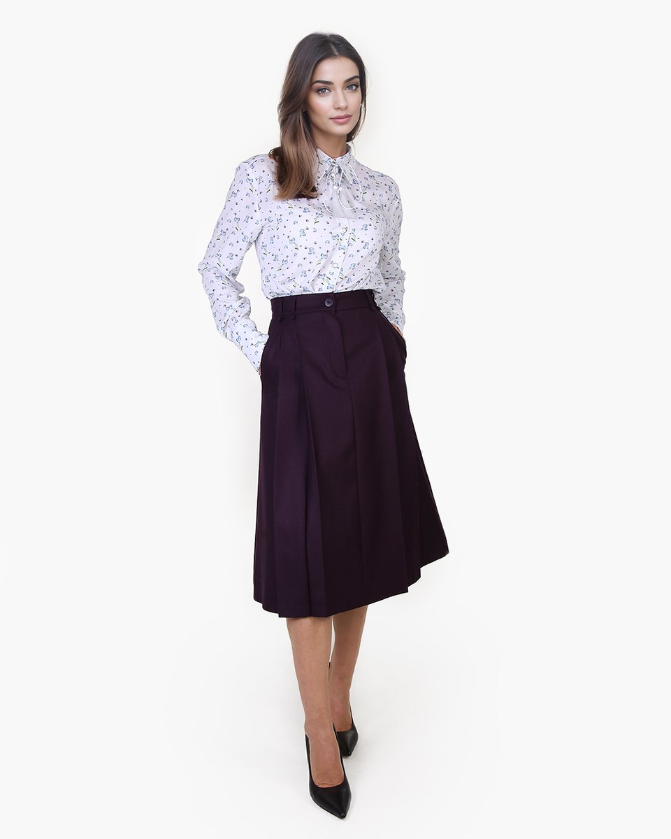 Костюмная юбка-трапеция в цвете темный пурпур. В коллекции представлена с классическим жилетом в тон (арт. 3091-10). Глубокие заложенные складки на талии придают модели эффектный объем и пышность. Помимо базовых блуз и футболок, к юбке подойдут мягкие фактуры (вельвет, замша) и полупрозрачные нарядные блузы из органзы, шелка или шифона. А также она прекрасно будет сочетаться с тонким трикотажем, вязаными свитерами и жилетами.