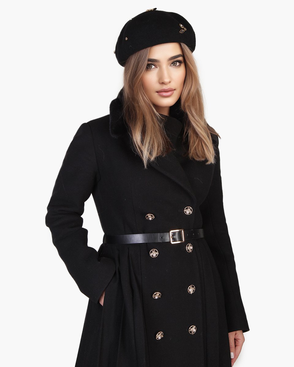 Берет из мягкой смесовой шерсти, представленный в палитре базовых оттенков — от классического чёрного и благородного бордо до уютного шоколада. Модель декорирована изящными нашивками, расшитыми сверкающими кристаллами, которые добавляют аксессуару лёгкий праздничный блеск. Универсальный силуэт берета легко сочетается с верхней одеждой любого стиля, превращаясь из элегантного дополнения к пальто в дерзкий акцент для повседневного образа объемным свитером или кашемировым платьем.